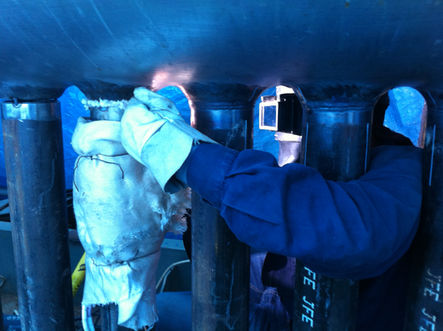 Piping fabrication and installation of 300.000 WDI stainless steel process pipes.